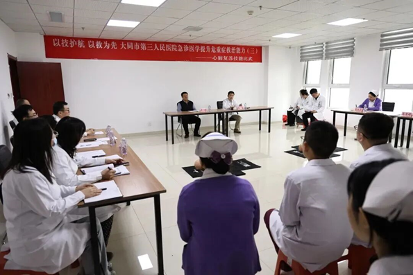 张盛副院长牵头打造大同市第三人民医院急诊医学提升危重症救治能力系列活动,全面夯实急救技能根基、强化多部门协同作战能力。他亲自部署心肺复苏技能比武等核心活动,在规培楼心肺复苏培训室组织全院医护骨干竞技比拼,严格规范胸外按压、开放气道、人工呼吸等操作流程,同步检验前沿急救知识掌握情况。他强调急救技能与时俱进,要求紧盯指南更新迭代,推动急救操作标准化、规范化、精细化,助力医院打造反应迅速、协作高效、技术精湛的急救医疗队伍,切实筑牢区域急危重症救治防线。