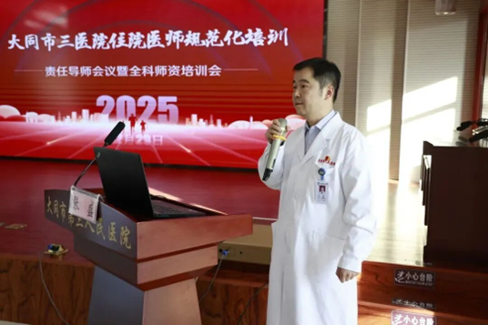 作为医院科教工作牵头人,张盛副院长积极对接大同大学,全力推动校院深度合作,为临床医学专业认证保驾护航。他主导整合医院科教科、住培办、护理部资源,牵头成立教学部,统筹全院教学管理工作,构建一体化教学管理体系。他推动将师资培养纳入医院发展规划,牵头引进执业医师训练系统软件,着力提升医学生执业医师考试通过率与临床实践能力。在他的推动下,医院与大同大学围绕临床教学、实习带教、学科发展等方面深化协作,以医教协同赋能高素质临床医学人才培养,助力学校顺利通过临床医学专业认证回访,筑牢区域医学教育发展根基。